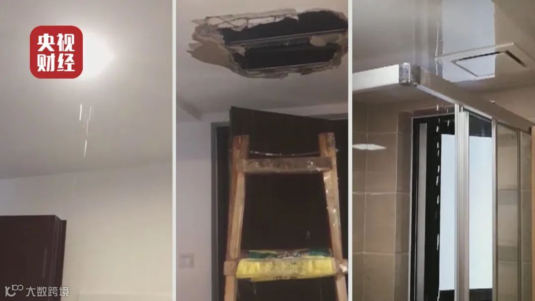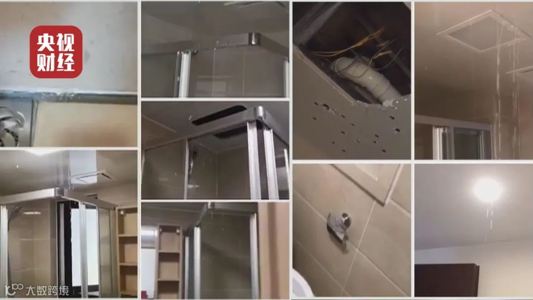 这是2018年11月广州万科尚城业主验房时看到的情景,楼上做蓄水试验时,楼下卫生间漏水的惨状,这一幕让业主们乔迁新居的喜悦之情,顿时跌入谷底。