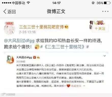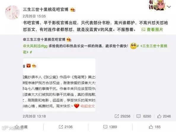 《三生》的微博是一个神奇的微博。先放两张知名截图。