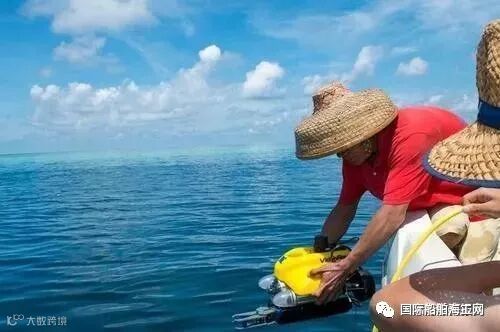 2015年8月至2016年6月,西沙航迹研究所通过使用声呐旁扫设备、电子计数铅垂、深海海流仪、深海水质分析仪、水下机器人、水下摄影摄像设备等器材装备,采用科学器材探测与人工潜水观察测量相结合的方法,成功探明蓝洞深度和基本形态。中国工程院院士孟伟为组长的专家组认定该探查结果可信。图为三沙市航迹珊瑚礁保护研究所的工作人员将水下机器人放入“三沙永乐龙洞”进行现场探查。