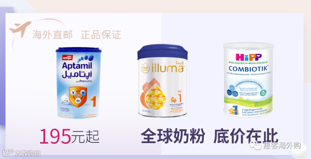 大家可以看到,咱家惠客海外购商城只有3款婴幼儿奶粉,分别是:惠氏启赋、德国喜宝和迪版爱他美。