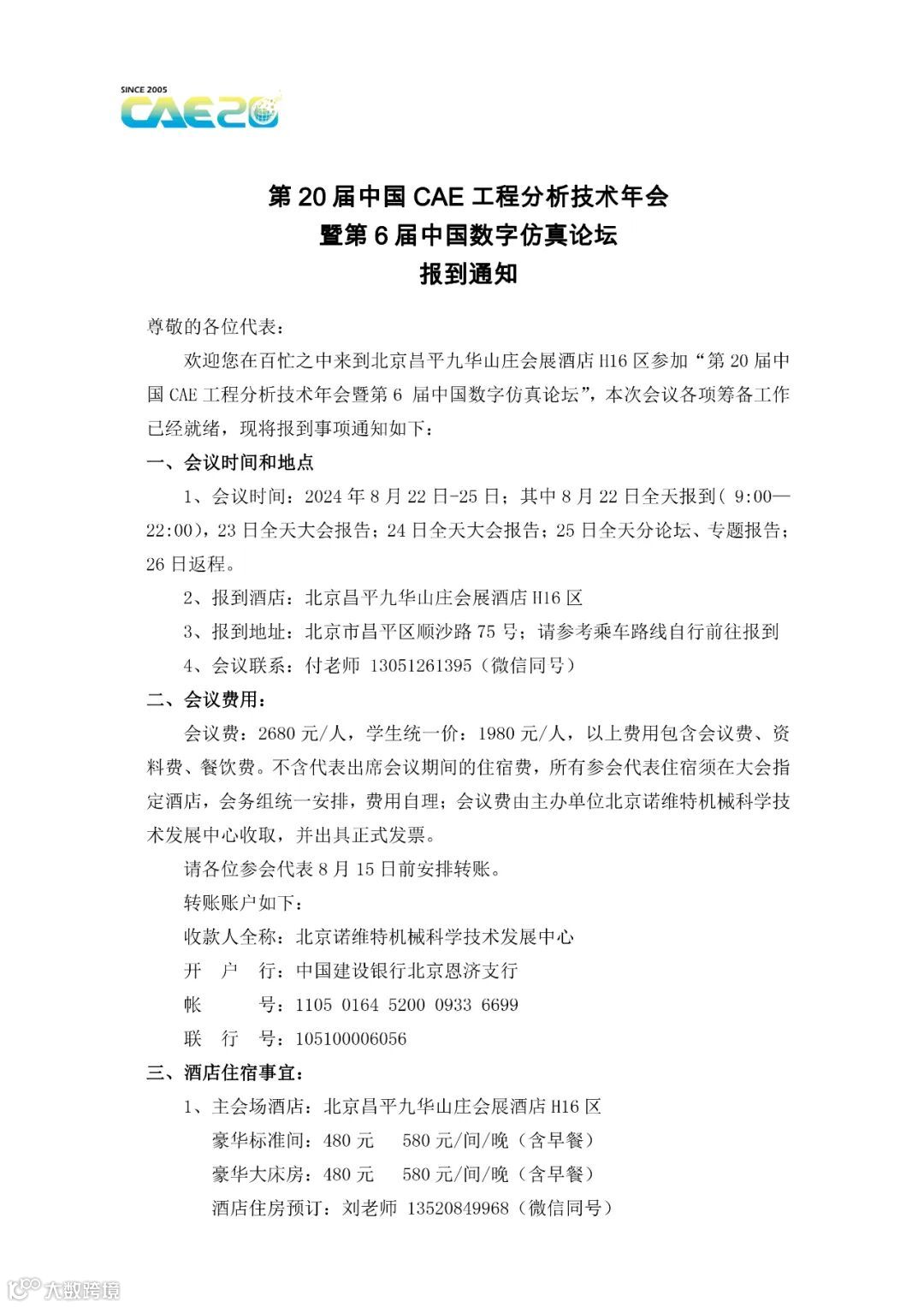 报到通知|第20届中国CAE工程分析技术年会(8月23-25日)