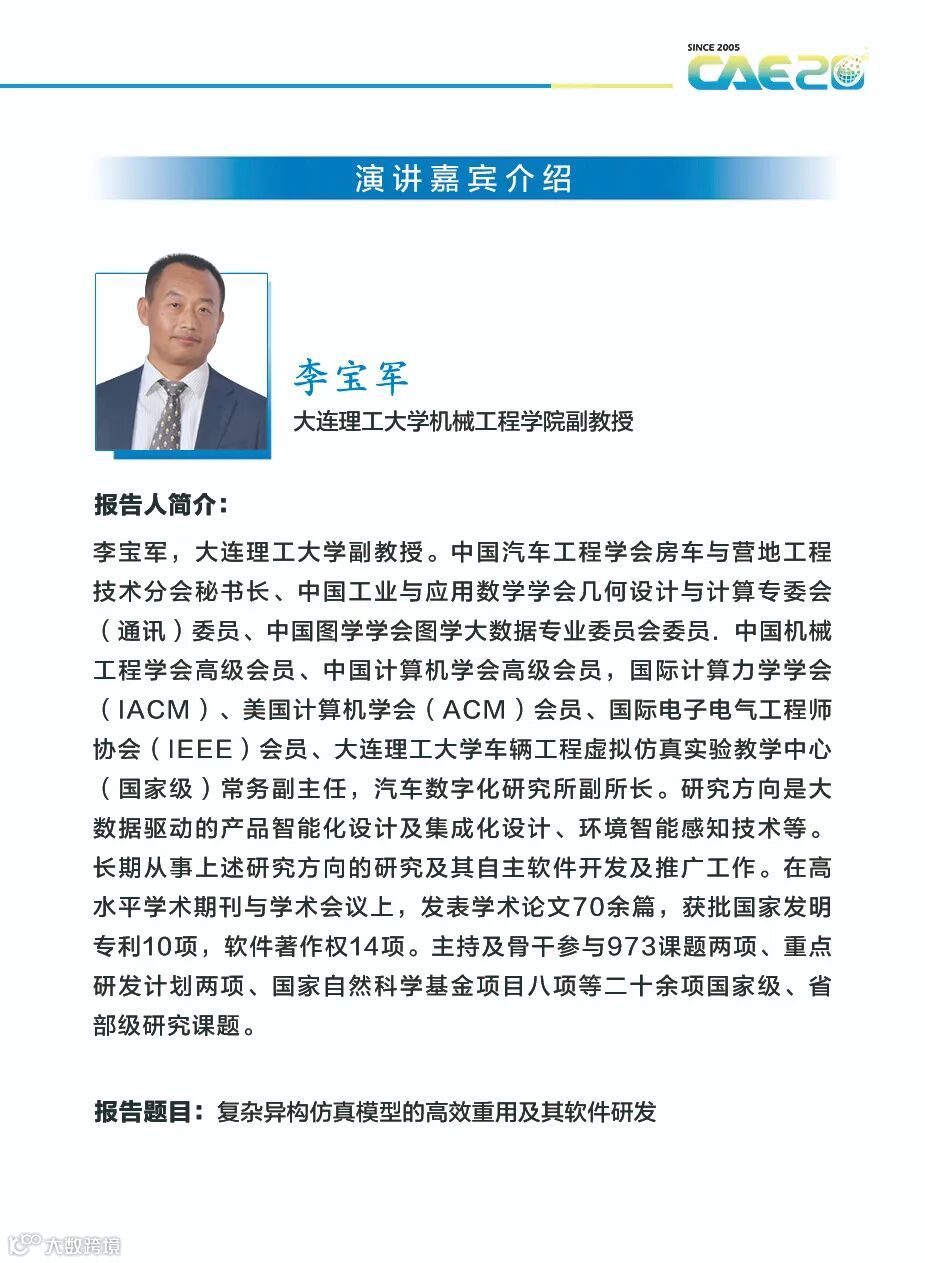第20届中国CAE工程分析技术年会暨第6届中国数字仿真论坛是经中国力学学会批准的2024年度学术活动计划,本届大会主题:CAE助力工业数字化、AIE赋能新质生产力——年会二十载,北京再启航。由中国力学学会产学研工作委员会、中国航空学会结构与强度分会、中国航空教育学会国际化人才培养分会、陕西省国防科技工业信息化协会、北京诺维特机械科学技术发展中心联合主办,将于2024年8月23—25日北京 昌平区 九华山庄盛大举行,近百名专家演讲,年会同期还将举办第4届中国数字仿真博览会。