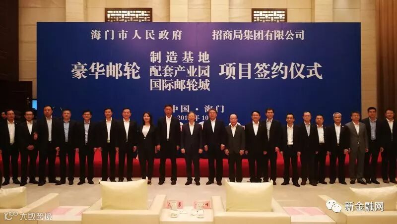 10月19日,招商局集团与海门市政府在江苏海门签署邮轮产业发展战略合作协议。豪华邮轮制造基地、豪华邮轮配套产业园、国际邮轮城合作协议同步签订。招商局集团总经理付刚峰、副总经理王崔军,海门市市委书记陈勇出席签约活动,我市市委副书记、市长郭晓敏主持签约仪式。