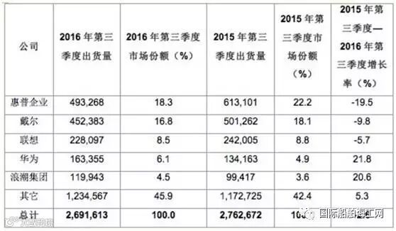 再比如服务器,2016年Q3全球出货前五惠普,戴尔,联想,华为,浪潮,都是中美企业,日本和德国都没有。