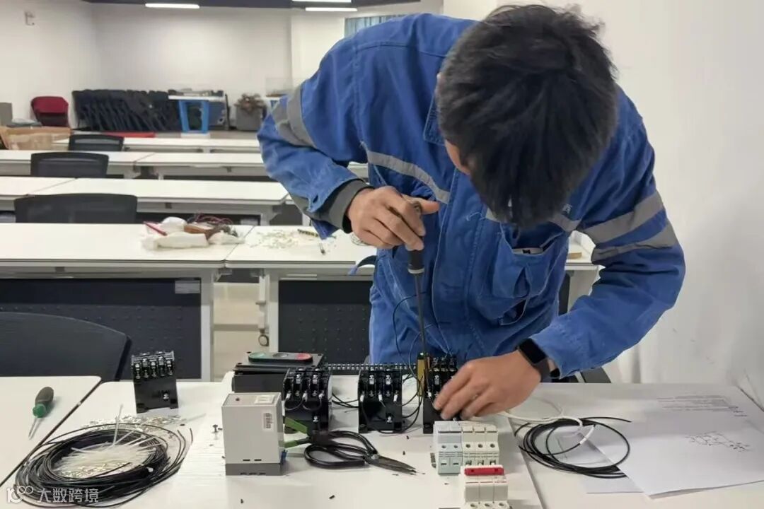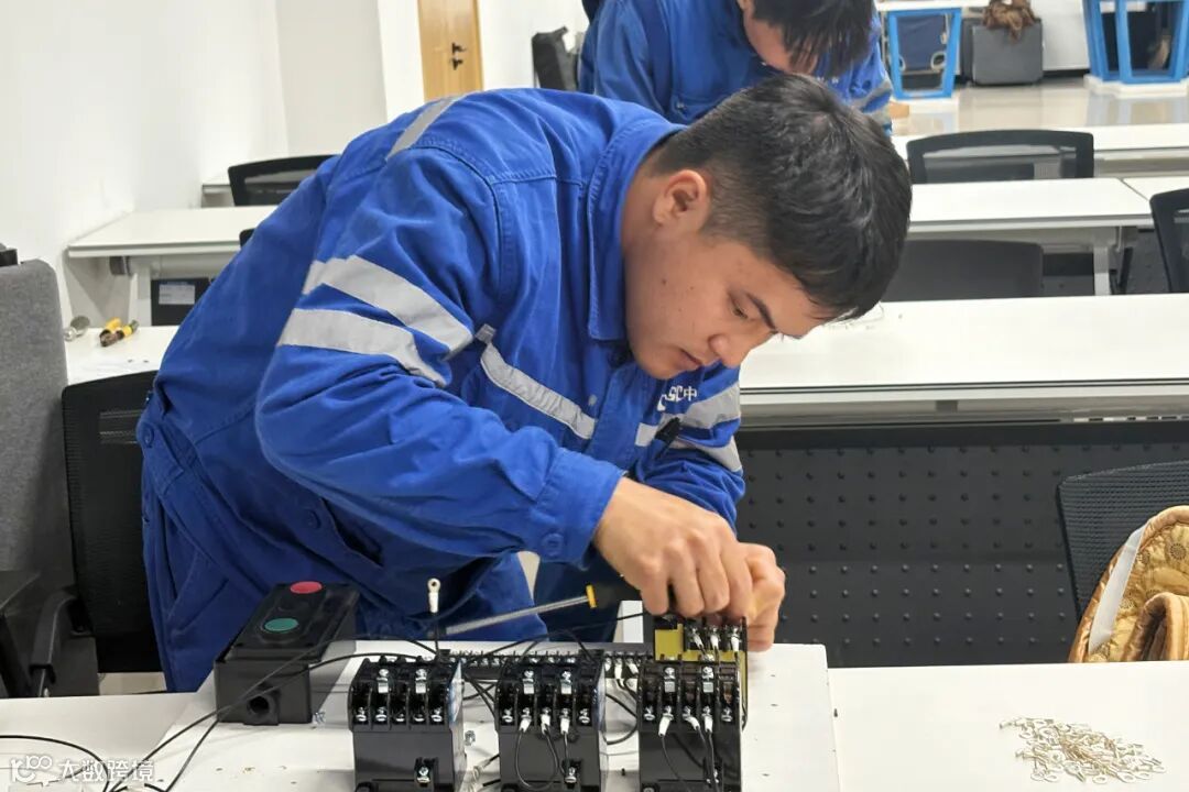 实操环节,参赛者要在规定时间内完成“接触器Y—△启动”模块任务,这既是对参赛者动手能力、工艺水平的考验,更是对其临场应变、逻辑分析及安全规范操作意识的综合挑战。现场,工具使用声、仪器检测声此起彼伏,参赛者接线、测量、排故、调试,每步骤都力求精准、高效。