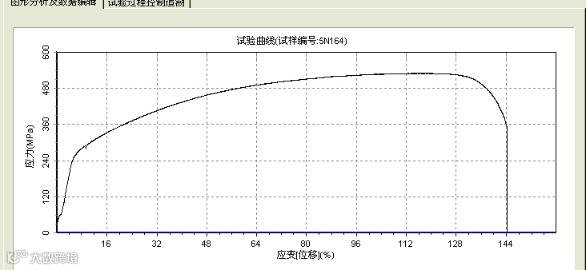 管件在弯曲时成型时,会发生明显的塑性变形。因此,管材的弹塑性特性及相应的材料分析计算模型建立是进行管件弯曲成型仿真计算的关键条件。管材弹塑性特性通过材料试验得到,典型试件的应力应变试验曲线如图1示。材料分析计算模型则在试验的基础上建立。