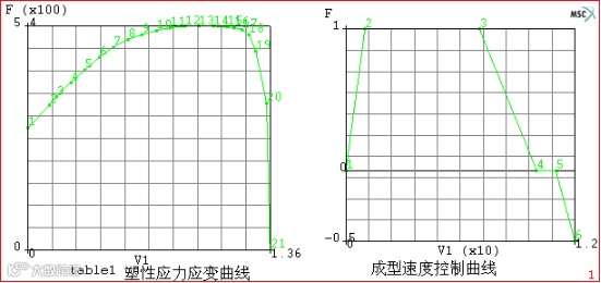 图3 管材塑性应力应变曲线及成型速度控制曲线