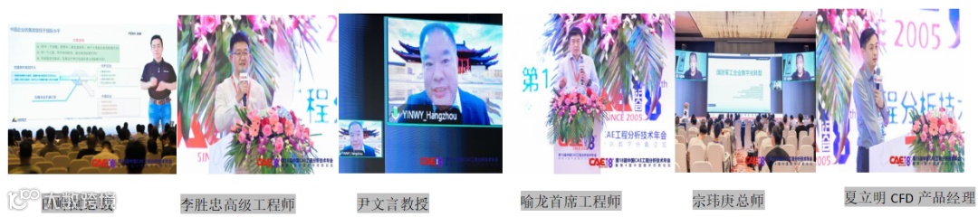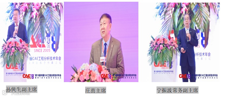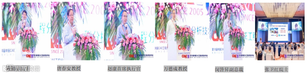 开幕式之后的大会特邀报告可谓是精彩纷呈,上午和下午分别由清华大学航天航空学院教授、国际计算力学协会副主席庄茁和中国航空工业信息技术中心原首席顾问、研究员宁振波担任大会主席。中国航空工业信息技术中心原首席顾问、研究员宁振波、中国科学院院士、西北工业大学副校长张卫红、浙江远算科技有限公司副总裁闵皆昇、北京云道智造科技有限公司董事长屈凯峰、日本工程院外籍院士、海南大学土木建筑工程学院教授董勤喜、上海数巧信息科技有限公司首席执行官赵康、大连理工大学土木工程学院教授唐春安、上海交通大学船舶与海洋工程计算水动力学研究中心主任、教授万德成、中国汽车工业协会秘书长师建华、浙江大学光电工程系教授尹文言、安世亚太公司高级副总裁田锋、北京航空航天大学科学技术研究院副院长陶飞、三一集团副总经理、数字孪生研究院院长郄永军、上海积鼎信息科技有限公司CFD产品经理夏立明、海洋石油工程股份有限公司设计院首席工程师喻龙、航天科工运载技术研究院信息化总师宗玮庚、中国船舶科学研究中心、科技委副主任、首席专家赵峰、大连理工大学机械工程学院教授宋学官分别就高性能计算CAE工业软件研发、数字仿真与数字孪生、数字仿真驱动数字化转型、云端CAE探索与展望、中国自主仿真软件开发及关键策略、软件定义制造、智能制造与数字仿真、数字仿真与通用机械设计制造等主题,通过线上以及线下的方式发表了精彩绝伦的演讲,赢得了参会代表一致的好评以及热烈的掌声。