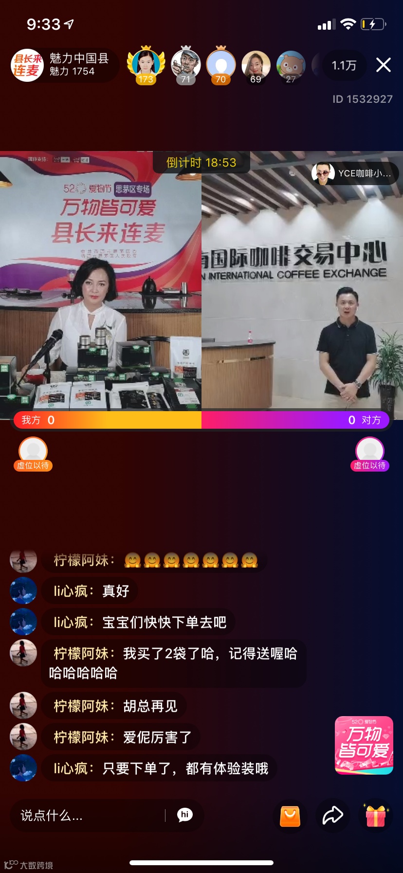 云南国际咖啡交易中心市场部经理刘海峰与直播间连麦,带直播间粉丝“逛”云南国际咖啡交易中心。
