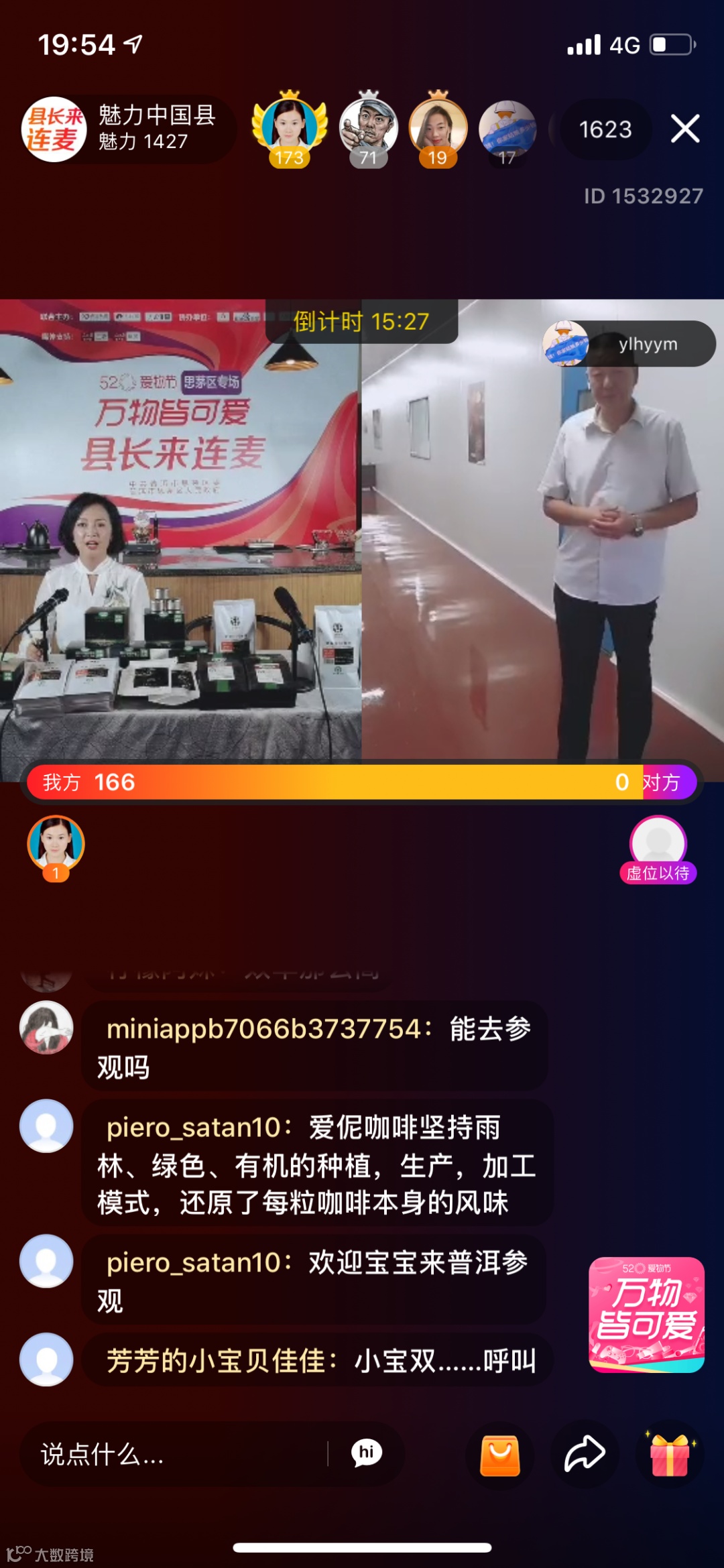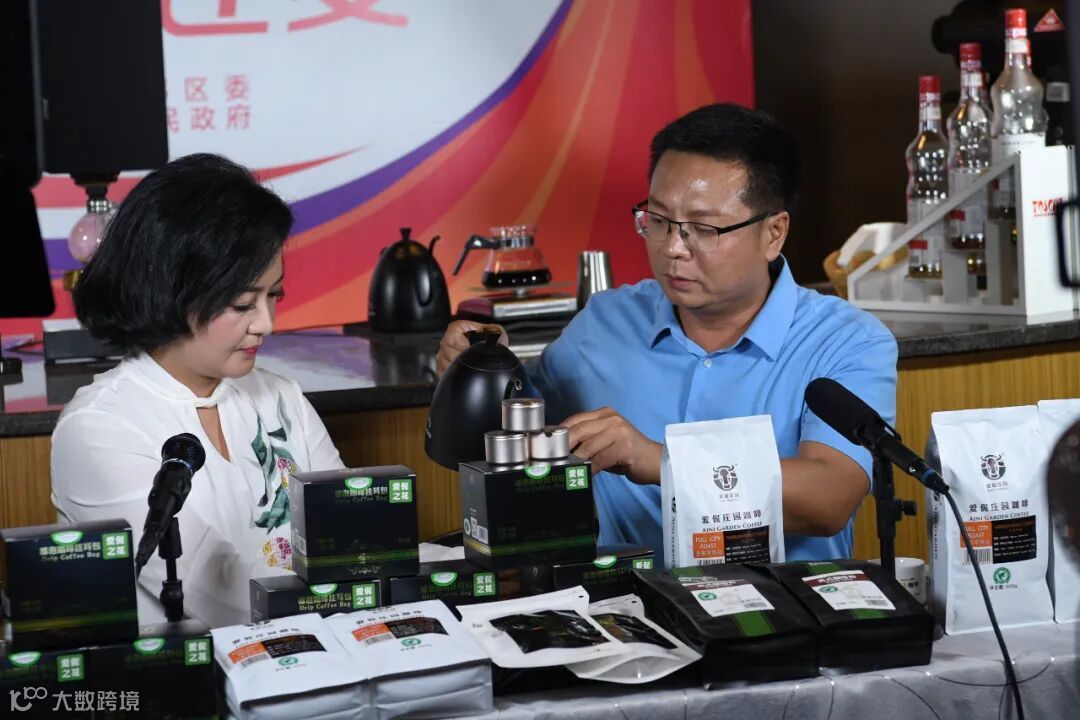 爱伲咖啡副总经理朱志宏与直播间连麦,在爱伲咖啡庄园基地介绍爱伲咖啡种植、生产加工情况,讲述爱伲咖啡故事并推介爱伲挂耳咖啡。