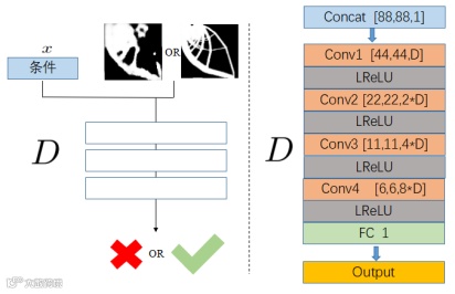 图2.4 去噪的CGAN判别器模型,FC代表全连接,Conv代表卷积层