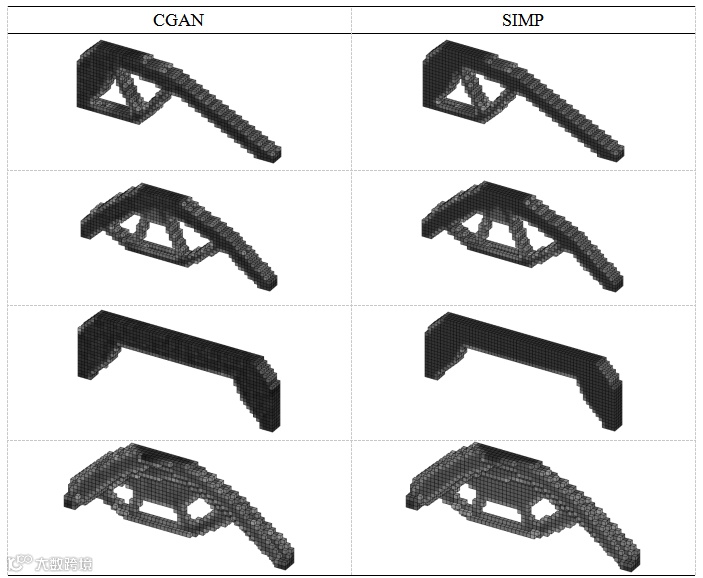 表 4.1 CGAN和SIMP生成的三维拓扑优化结构对比