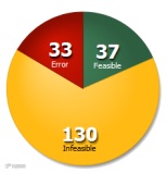 总共的优化分析时间为2天18小时。200个优化分析中有33个出错,主要原因是8个参数一起发生变化时,CAD生成模型的错误。有130个优化是不可行的,原因是这130个优化过程中模型的压力损失值不满足小于2000 Pa的约束条件,最终有37个优化完全满足约束条件。