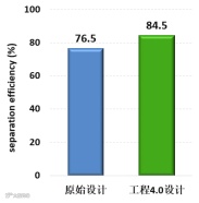对比显示,根据工程4.0流程开发的重型卡车空滤的压力损失比传统的开发流程降低了大约150 Pa,灰尘预分离效率提升了大约8%。图14为压力损失的对比图,图15为预分离效率的对比图。