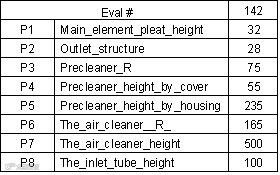 优化目标要根据产品的性能要求来定义。本重型卡车空滤的要求是压力损失小于2200 Pa,灰尘预分离效率高于80%。