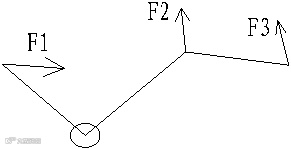 左转极限时,右转向节臂处受力情况如图2所示,其中F1为直拉杆对转向节臂的拉力,F2为横拉杆对转向节臂的拉力,F3为右横拉杆对转向节臂的推力。