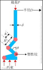 J.M. Alexander[14]将薄壁圆管的压缩吸能分为弯曲能和膜力能,把压缩变形模式描述为基于塑性铰的弯曲和折皱,其能量耗散计算模型和对应的实验结果如下图1。