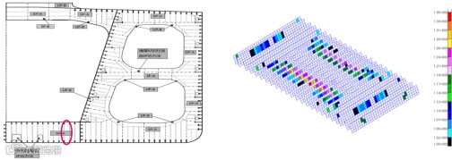图13 对于某舷侧结构采用不同板厚设计时的屈曲利用因子计算结果