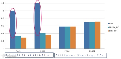 图8 40万吨级矿砂船某超尺度板格结构的屈曲利用因子计算结果比较