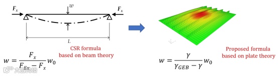 此外,各船级社规范及IACS规范都是船级社长期以来来持续吸收当时的最新技术成果逐渐形成的,导致一些规范要求在目前看来已经过时;在不同时期提出的用于不同船型的同一类型规范要求也存在不一致的情况,因此有必要对相关规范进行更新和协调。目前,IACS成立的PT PH43工作组首先针对UR S11和S11A船体梁强度统一要求以及针对UR S21和S21A舱口盖结构强度统一要求,将屈曲规范进行了协调,如图16所示。后续在IACS新成立的PT PH50工作组中将继续开展各船型结构强度评估规范要求的进一步协调。而在所有相关规范技术研究中,以有限元分析方法为代表的CAE分析方法正在发挥着越来越重要的作用。