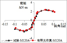 图5为反复加载下的滞回曲线,该滞回曲线较为饱满,且可以显示出捏拢滑移特性,较符合钢结构梁柱节点的滞回特征。
