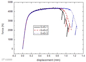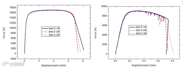 a)单轴拉伸力-位移曲线 b)缺口D2.0mm力-位移曲线