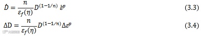 公式3.4与具体的应变值无关,只与当前的损伤和应力状态有关,当损伤变量D越接近1时,损伤演化越快,可以用来对非比例加载进行损伤的累计预测。