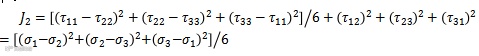 冯.米塞斯的屈服准则和应力-应变关系在弹性和塑性区域基于应力偏张量的第二不变量,其中,的表达式如下:
