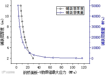 2.1.3铺装参数对钢板-U肋焊缝处应力的影响