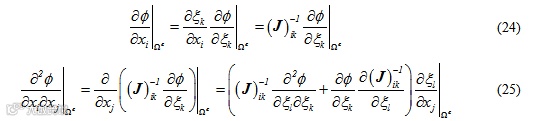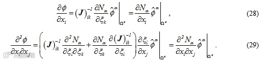 对于现有的物理问题,其控制方程需要用到变量的一阶导数及二阶导数。形函数对局部坐标的一阶及二阶导数可直接获得。如变量