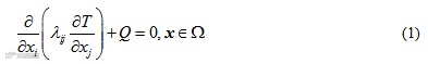 对于给定的计算域及边界,稳态热传导问题的控制方程的一般形式为