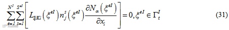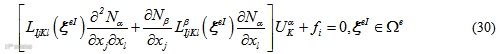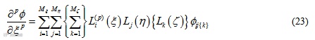 对于几乎所有的物理问题,其计算域通常是不规则的。因此在得到了参数坐标下变量的导数之后,要采用坐标变换技术得到其在全局坐标的导数。考虑计算域内的某连续函数,其一阶导数及二阶导数的具体格式为