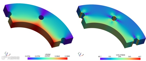 图10. Freman计算所得总位移云图和von-mises应力云图