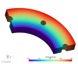 图7. 带孔圆筒的1/8模型及Freman计算所得温度云图(弱形式)