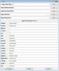 平台可以自动识别模型文件中材料名称、零件名称、工况名称等信息,并自动匹配材料库中对应材料的性能参数,按所需参数和规定格式写入报告中;同时平台内部嵌套一套结果数据和图片曲线数据的命名规则,可以将后处理自动化模块存储备用的结果数据和图片数据自动插入到报告模板的相应位置;平台还提供给工程师修改报告模板基础信息的窗口,工程师可以根据项目实际修改窗口默认带入的模板信息。