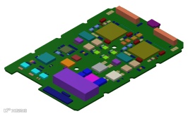 b) 模型导入:导入印制板组件EDA的ODB++格式工程文件,根据材料库和器件库设置印制板层叠参数和元器件封装参数,部分元器件三维模型见图3,生成印制板组件的仿真模型如下图4所示,元器件库的建立是此步的关键。