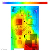 图5 印制板组件温升分布 图6 印制板组件元器件热疲劳寿命分布