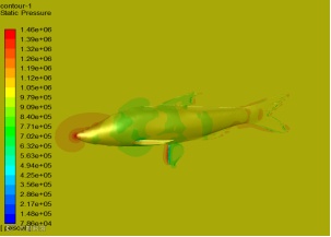 (d) 30m/s与10个大气压的鱼体压力云图