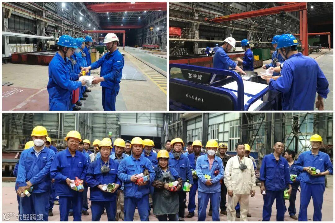 为冲刺下半年生产任务,为数众多的一线职工日夜奋战,工会为加班的职工送上免费宵夜,贴心服务保障生产。