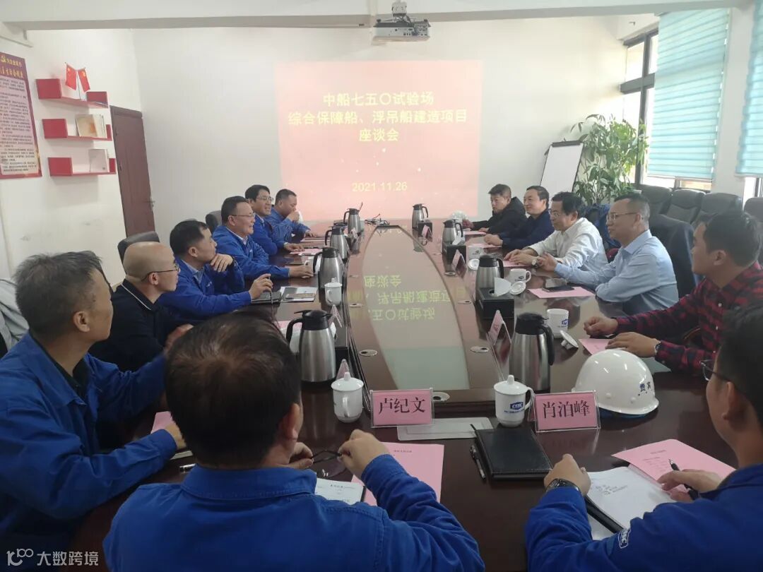 近日,中船七五〇试验场场长崔国平一行到中国船舶集团广西公司旗下桂船公司调研综合保障船、浮吊船项目,并在钦州总部与公司党委书记、董事长罗兵举行项目座谈会。试验场纪委书记覃廷贵、副场长孙华及有关业务负责人,中船广西公司党委副书记、总经理张新龙,副总经理曾令强,副总工程师罗玖强,以及有关部门业务负责人参加调研活动与座谈。