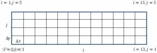 网格算法中的"结构网格",指的是网格节点间存在数学逻辑关系,相邻网格节点之间的关系是明确的,在网格数据存储过程中,只需要存储基础节点的坐标而无需保存所有节点的空间坐标。如图1所示为典型的二维结构网格。对于二维结构网格,通常用i、j 来代表x 及y 方向的网格节点(对于三维结构,利用k 来代表z 方向)。对于如图所示的网格,在进行网格数据存储的过程中,只需要保存i=1,j=1位置的节点坐标以及x、y 方向网格节点间距,则整套网格中任意位置网格节点坐标均可得到。需要注意的是,结构网格的网格间距可以不相等,但是网格拓扑规则必须是明确的,如节点(3,4)与(3,5)是相邻节点。