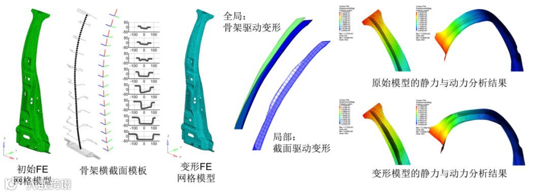 综合分析上述两类技术路线的优势与局限,基于CAE为核心的技术路线,以车身薄壁结构为对象,研究了面向不同结构设计任务的薄壁结构设计参数表示,提出了与其对应的网格变形方法,实现了快速有效的CAE网格模型重用,并开发了具有独立自主产权的软件模块,具体内容如下。