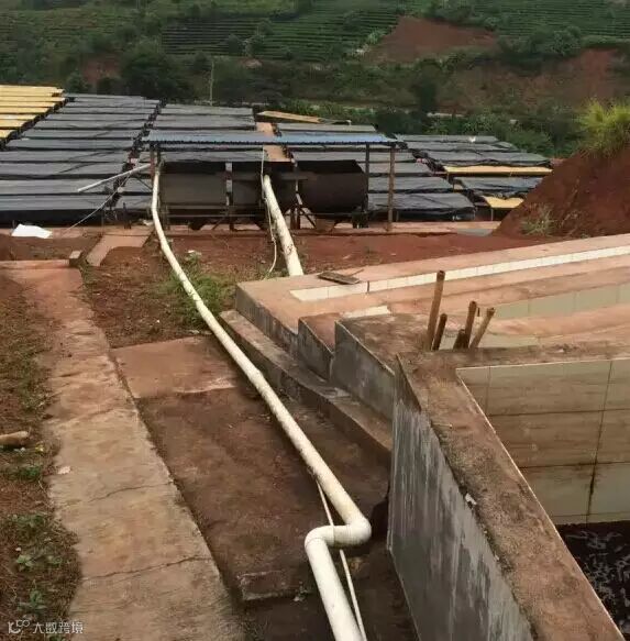 白場長熱情的接待了我們,並帶領我們參觀了生豆加工區、處理區、和日曬區。在愛伲莊園,其實是以半水洗半日曬來處理咖啡漿果的。將採來的咖啡漿果放入大水池裡,漂浮在水上面的空果和發霉果先去除,然後將沉在水底的漿果推送到從哥倫比亞運過來的去皮機裡面去,將果皮脫掉,然後進入蜿蜒的水池,將咖啡生豆和果膠一起沖洗,之後送到泡洗池裡面進行發酵,並裝袋放到曬場去曬。與其說曬,不如說是去風乾。所以,我覺得這是半水洗法。當時沒有看到莊園,所以看豆型應該是卡迪姆。