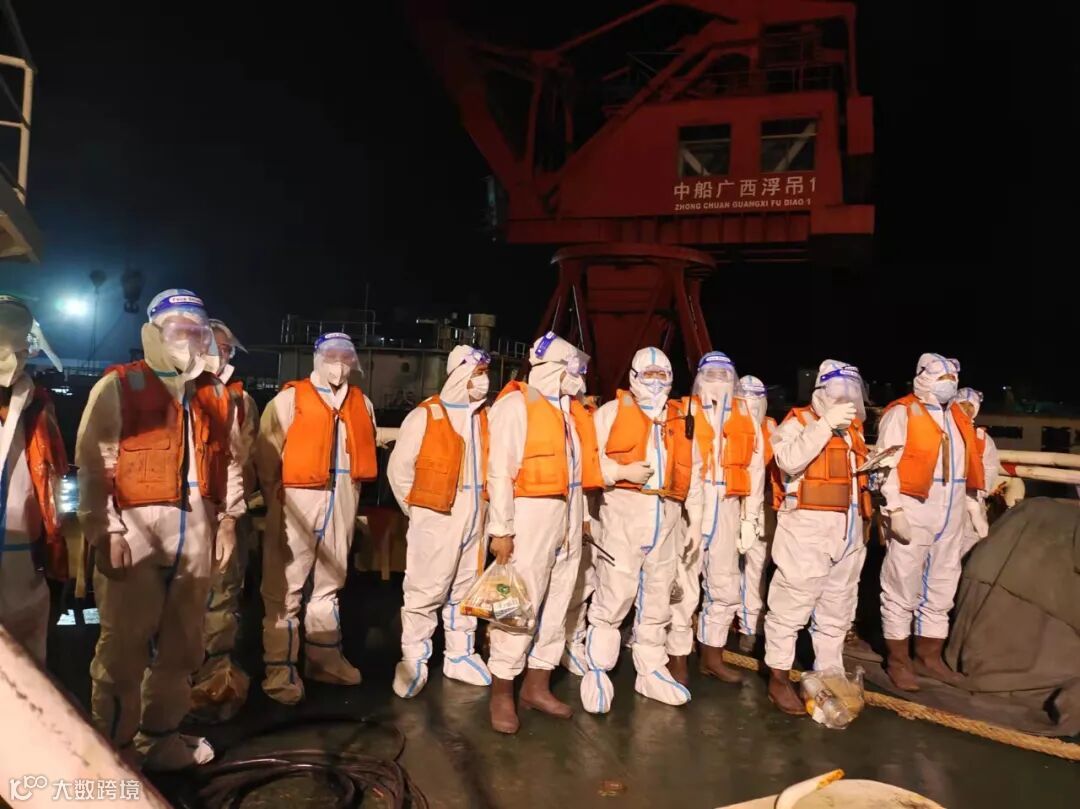 坚决筑牢境外输入防线。按照公司“一船一策”要求,制定《1215项目专项防疫工作方案》,并组织项目组各成员及施工班组负责人进行宣贯学习,与所有登轮人员签订个人疫情防控承诺书。在项目组内部还成立了以党员和青年团员为主的防“疫”的先锋队,他们各司其职、主动担当作为,始终坚守在抗击疫情防线的第一道关口,需要的时候还会裹着严严实实的防护服,毅然扛起拖带、消杀任务。“大白”不仅是医护人员和志愿者的代名词,还有这群可爱的先锋队员,他们为公司筑起了一道坚实的疫情防控屏障。