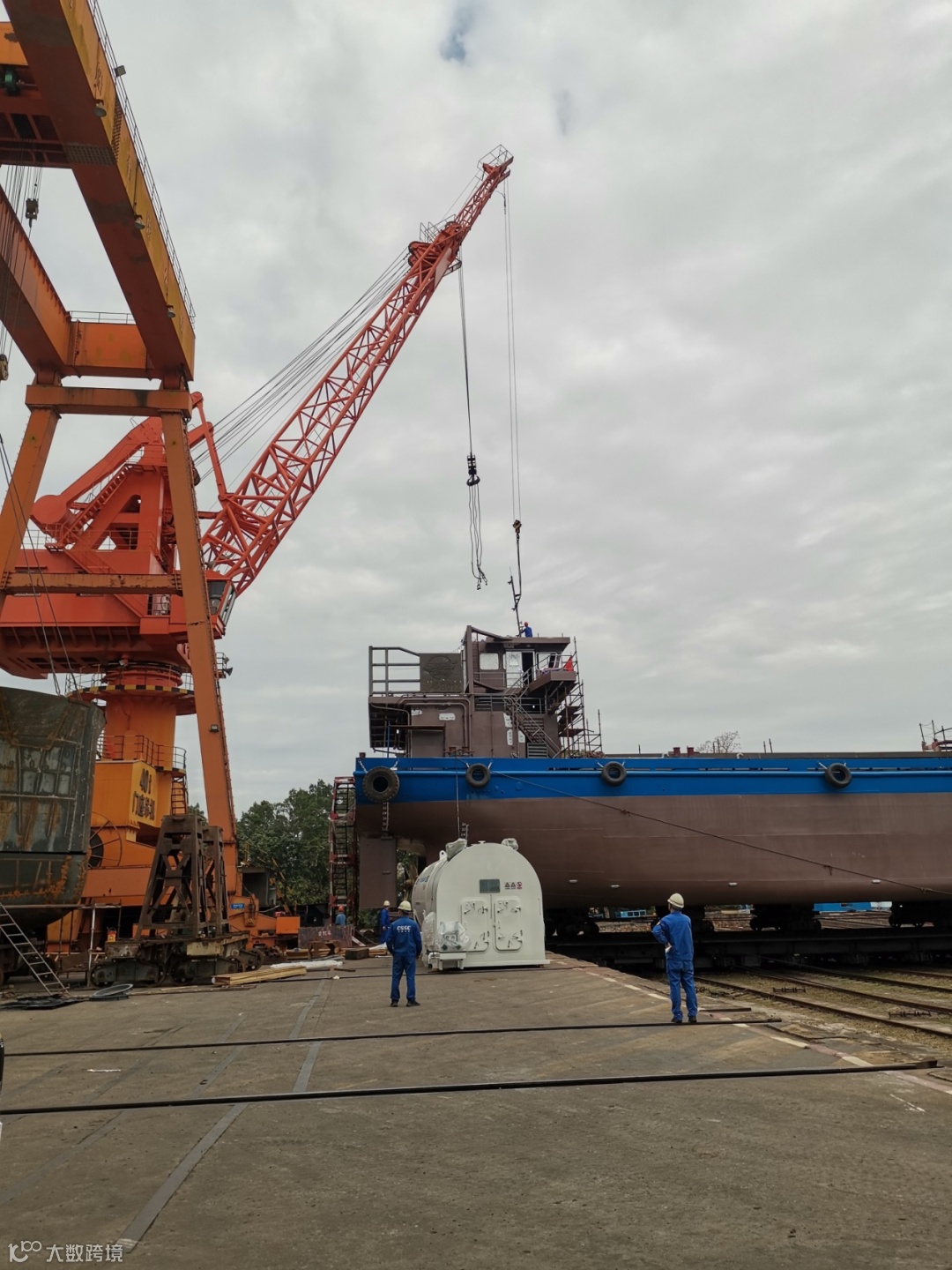为减轻码头起重负荷,务必确保气罐吊装上船后再下水。生产管理部克服重重困难,密切跟踪气罐具体到货日期,直接与气罐生产厂家沟通协调,最终确保气罐吊装后再实施下水节点。