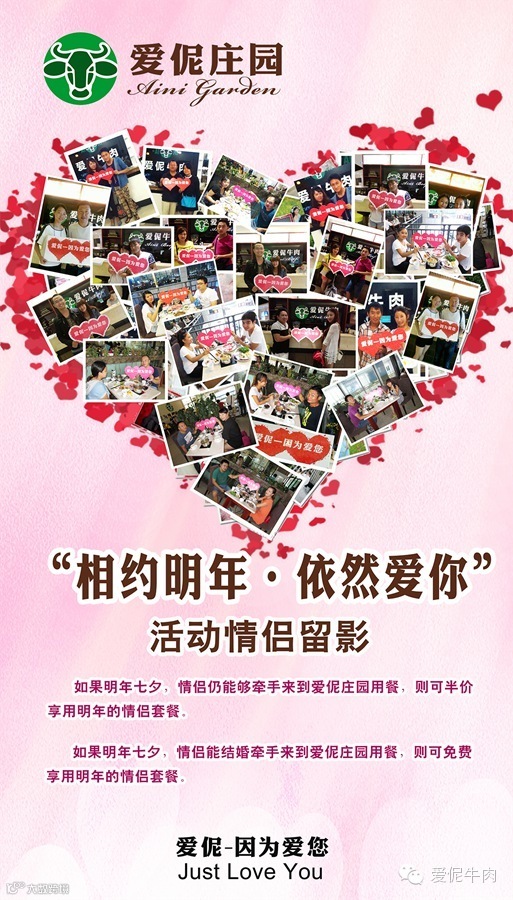 如果明年七夕,情侣仍能够牵手来到爱伲庄园用餐,则可半价享用明年的情侣套餐。
