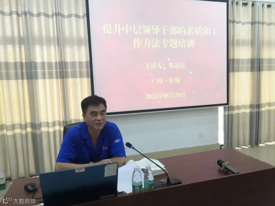 为满足公司管理要求,提升公司中层干部的管理水平及自身修养,增强团队凝聚力。2021年8月26日,中国船舶集团广西公司开展提升中层领导干部素质和工作方法专题培训班,公司党委副书记黎远亮为中层干部上了一堂《干部素质和工作方法》专题培训课。公司全体中层干部及部分部门骨干共计50余人参加了此次培训。