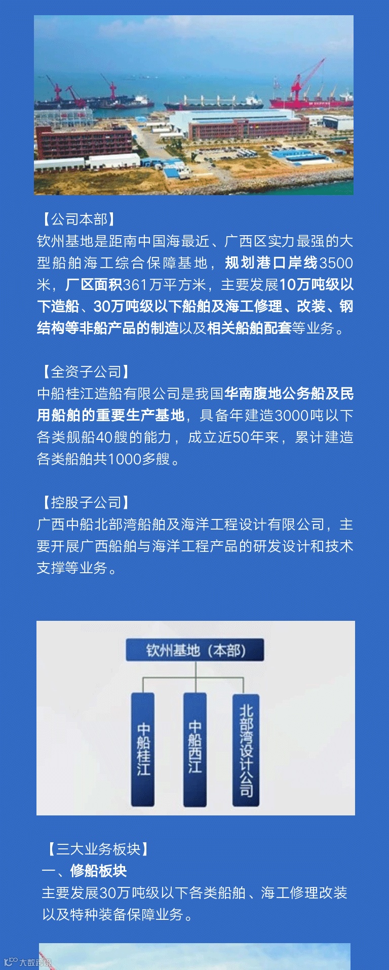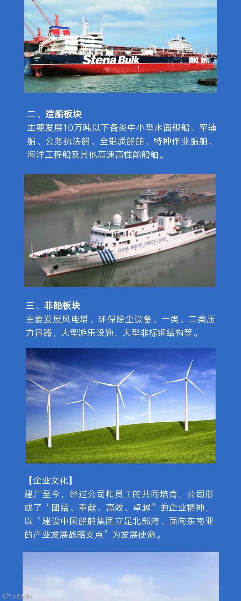 中国船舶集团有限公司旗下中船广西公司主要经营船舶修造、风塔、游乐设施、压力容器、除尘设备、非标钢结构制造等。