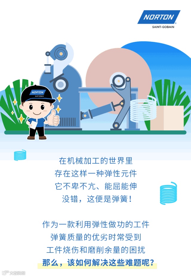 圣戈班工程师向该客户推荐了一款具有“红金刚”美称的圣戈班诺顿解决方案——诺顿 DGL树脂端面磨砂轮,助力该企业机械弹簧加工消除后顾之忧。