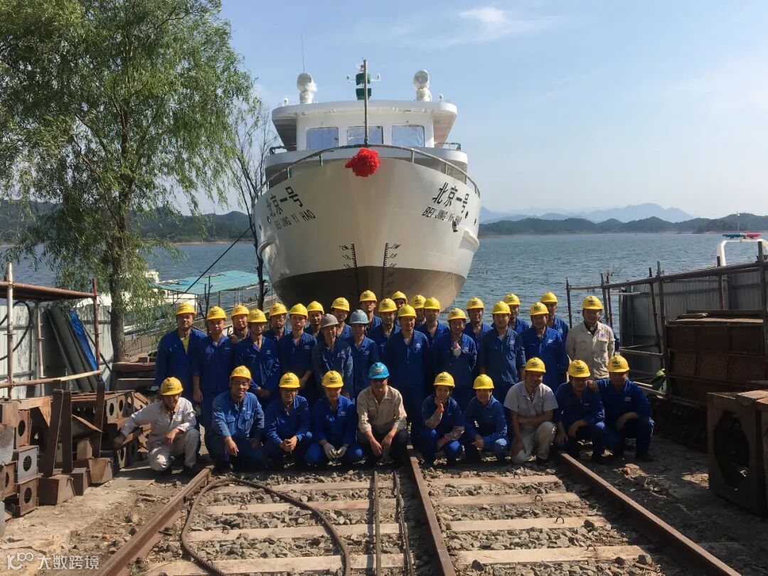 6月30日上午9:28,由桂船公司承建的北京密云水库“北京一号”船在北京密云水库顺利下水。北京一号船是桂船公司继去年已交付的密云水库水质监测船和工程作业船后,为密云水库建造的第三艘新型电力环保船舶。该船适航于我国B级航区,主要承担密云水库库区管理、综合指挥及其他特殊临时任务。